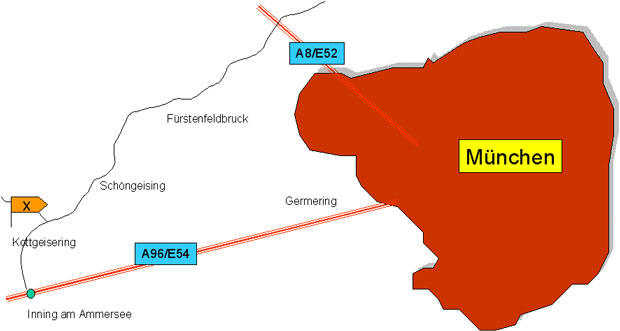 taking the Autobahn (A96) Munich-Lindau, exit "Inning". Keep on